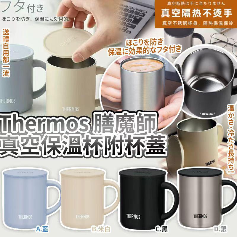 日本🇯🇵Thermos膳魔師真空保溫杯附杯蓋(450ml) $88/個,2個或以上每個$78 ❌截單時間:12月23日 📦到貨日期:預計1月下旬到貨 款式選擇:詳見內文 ✴️內膽不銹鋼料 ⭐保冷保暖⭐ 真空隔熱結構可在飲用時保持冷暖溫度 裡面保暖但外側又唔會熱親隻手 👉放凍飲又唔會外側結霜整濕張枱,杯墊都唔洗用 👉茶、咖啡、軟飲料等都啱用,仲配埋蓋防埋塵 👉保暖效能一流,冬天飲杯熱茶暖笠笠 🥰送禮自用都一流,送返個窩心小禮物俾朋友啦🔥 顏色 A)藍色 B)米白色 C)黑色 D)銀色 💖容量︰350ml 💖保溫效果(1小時)︰67℃以上 💖保冷效果(1小時)︰8℃以下 💖尺寸(約)︰直徑約8cm x 高約12cm 💖體重(約)︰230g /中國製