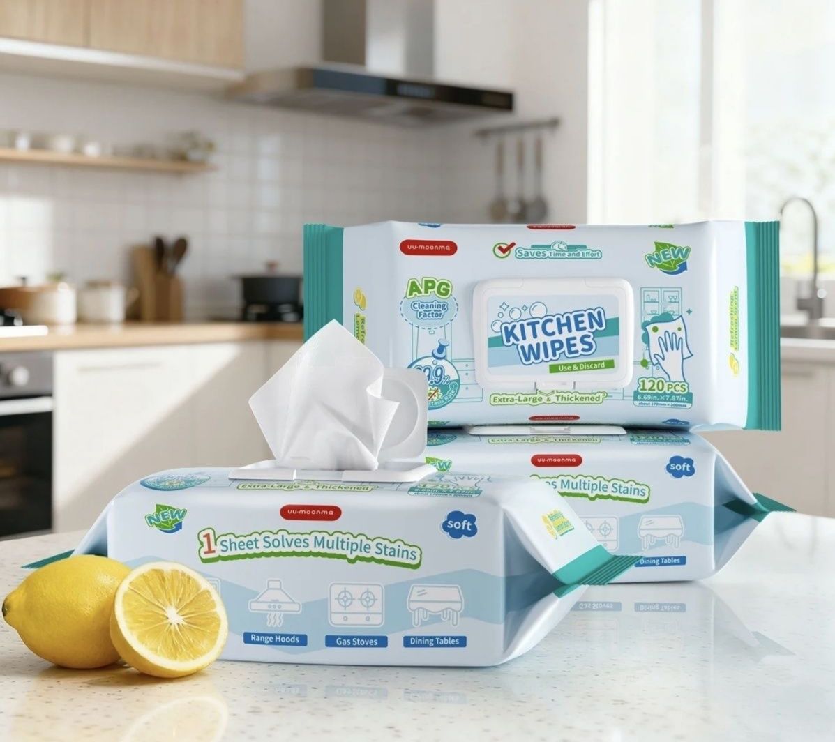 日本UYIKU廚房濕紙巾去油污家用清潔濕巾120片/盒 $50/套(1套3包) 強效去油污:快速分解油漬,輕鬆清潔廚房油煙機、灶台等重油污區域 * 一次性使用:隨用隨丟,免洗抹布,方便衛生 * 厚實耐用:加厚無紡布材質,不易破損,清潔更徹底 * 安全溫和:不含刺激性化學成分,保護雙手及廚具表面 * 多用途:適用於廚房檯面、餐具、家電等各類清潔需求 規格: * 每包120片裝 * 尺寸:20cm x 15cm(單片) 使用場景: ✔ 油煙機表面油垢 ✔ 燃氣灶台頑漬 ✔ 瓷磚牆面油污 ✔ 餐桌檯面清潔 ✔ 廚房家電保養 提示: ※ 避免接觸眼睛,使用後請洗手 ※ 用後請丟入垃圾桶,勿沖入馬桶 輕鬆解決廚房油污問題,讓清潔變得更高效!