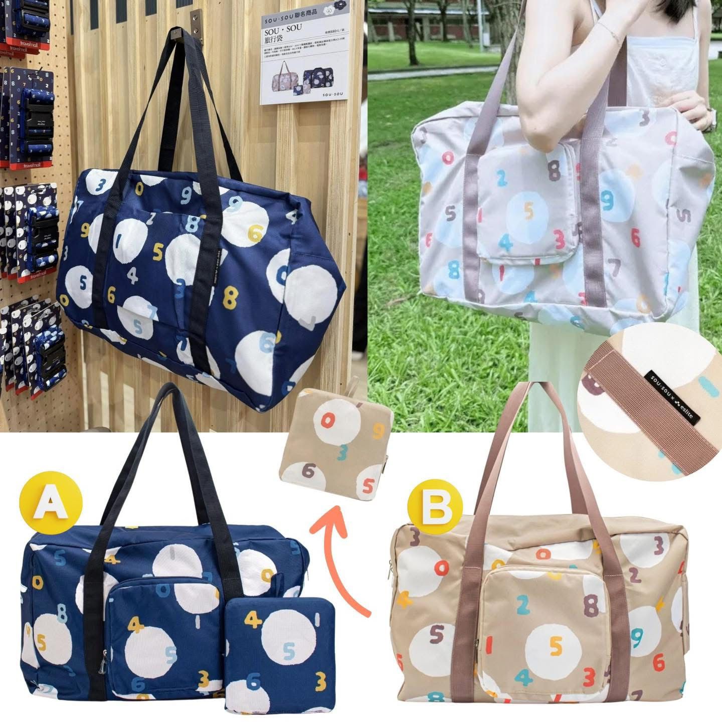 日本sou.sou大容量可摺疊旅行袋 $75個,2個起$69個 A.藍色 B.卡其色 低至$69個!!! 新款新款🇹🇼台灣限定~ 好靚呀 ~~ 日本sou.sou大容量可摺疊旅行袋 ✨ 容量大, 可固定行李箱上, 旅行瘋狂購物都唔怕!! . ✔ 超寬敞主空間,可輕鬆收納3-5日旅行衣物、隨身物品。👏🏻 ✔ 採用高強度聚酯纖維材質,輕盈耐用,摺疊後僅手掌大小,便於隨行收納。 ✔ 袋身印有 SouSou 經典「印花」,融合傳統書法筆觸與現代色彩,低調展現日式美學。 ✔ 內置拉鏈隔層、彈性側袋,分類收納更直覺。 ✔ 強化手提帶 + 可調節肩帶設計,手提、肩背皆舒適。 ✔ 防水塗層處理,應對雨天或顛簸旅程。 . 👍 短期出差✨ 小旅行:一袋整合衣物、鞋履、梳洗用品。 👍 日常備用✨ 摺疊後可置於辦公室或車內,臨時需求隨時展開。 😍 風格搭配✨ 設計跳脫傳統旅行袋框架,成為穿搭亮點。 📌 材質:聚酯纖維(含防潑水塗層) 📐 尺寸:約34.5l 容量(約 H36 x W20 x D48cm), 摺疊後厚度僅 約18x20cm