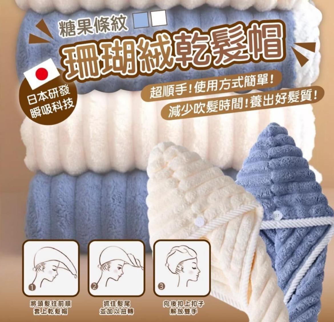 糖果條紋珊瑚絨乾髮帽 (1組2條)