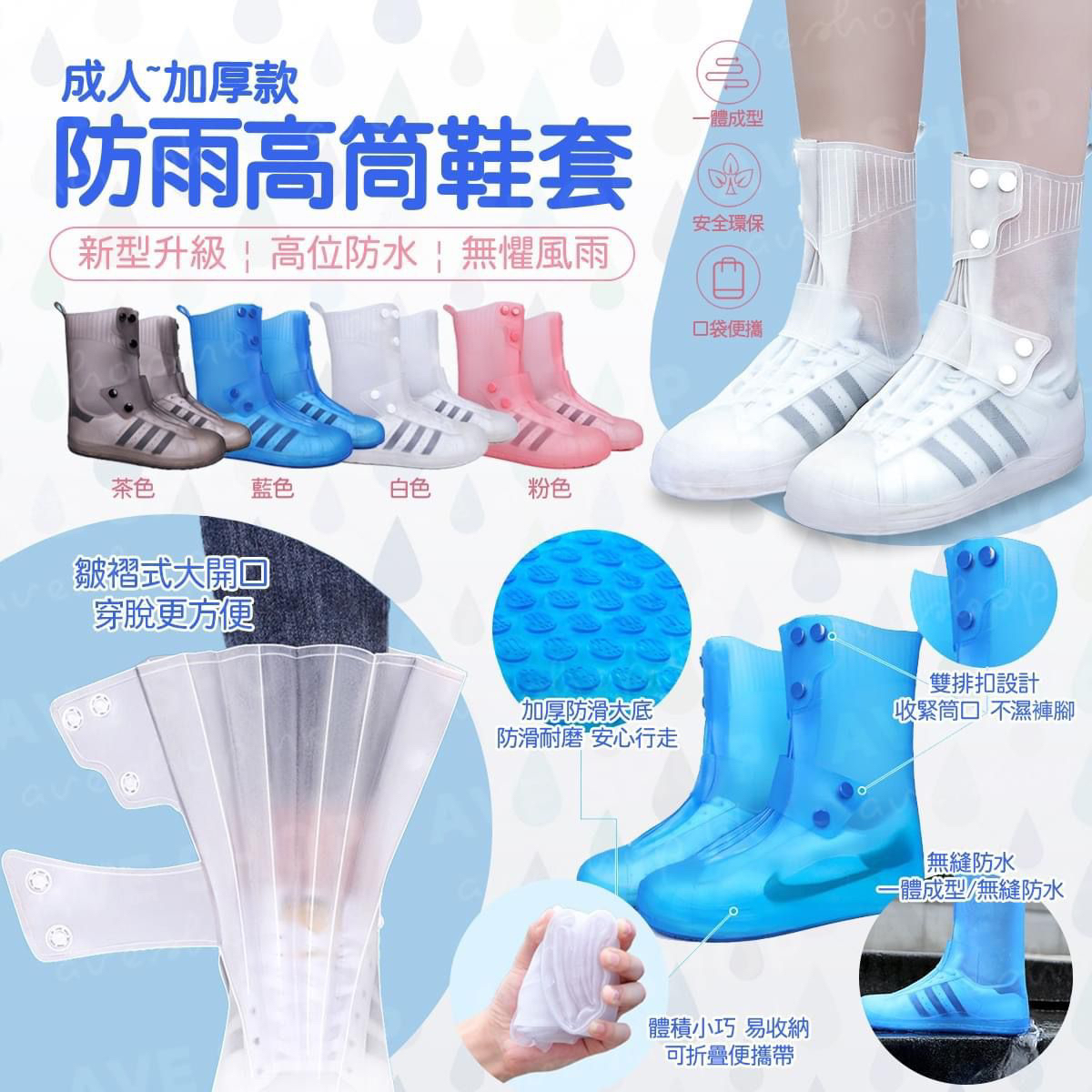 新型升級/高位防水/無懼風雨 👍🏼 防滑耐磨 👍🏼 一體成型 👍🏼 口袋便攜 👍🏼 安全環保 ▶️ 防滑耐磨 升級高筒雙色加厚底 不濕褲腳 ▶️ 無縫防水 一體成型/無縫防水 ▶️ 體積小巧 易收納 可折疊便攜帶,多色可選 ▶️ 扇形褶皺開口 穿脫更方便 [三個步驟輕鬆穿脫] 1.套入鞋頭 2.再提後跟 3.拉上扣好 顏色:白色、藍色、粉色、茶色 尺碼:34-45 高筒:27cm 材質:PVC 適用性別:男女均可 *註:數據僅供參考,因手工測量,可能存在+-1cm左右誤差。 ⚠️注意事項⚠️ ① 戶外使用:室內釉面、光滑地板瓷磚不宜使用 ② 老人及孕婦等高危工作者不建議使用 ③ 嚴禁小孩作為頭套使用,以免窒息