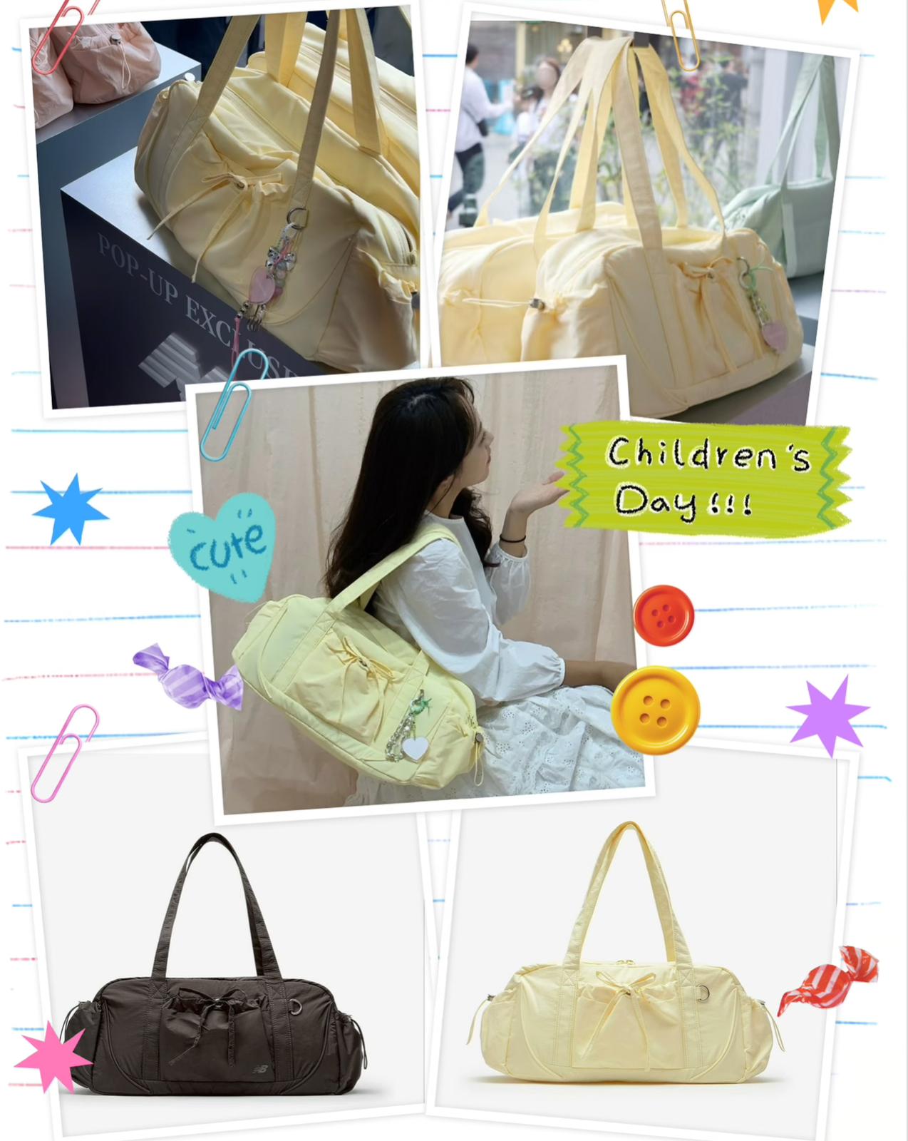 韓國NEW BALANCE Glossy Ribbon Duffle Bag $368/個 側邊有水杯兜 有固定鬆緊帶 ✅Material: Outer Fabric- Nylon 100%, Lining- Polyester 100% 重量: 250g Size: 40 x 20 x 17 cm 容量: 13.5 L 顏色:黑色 黃色