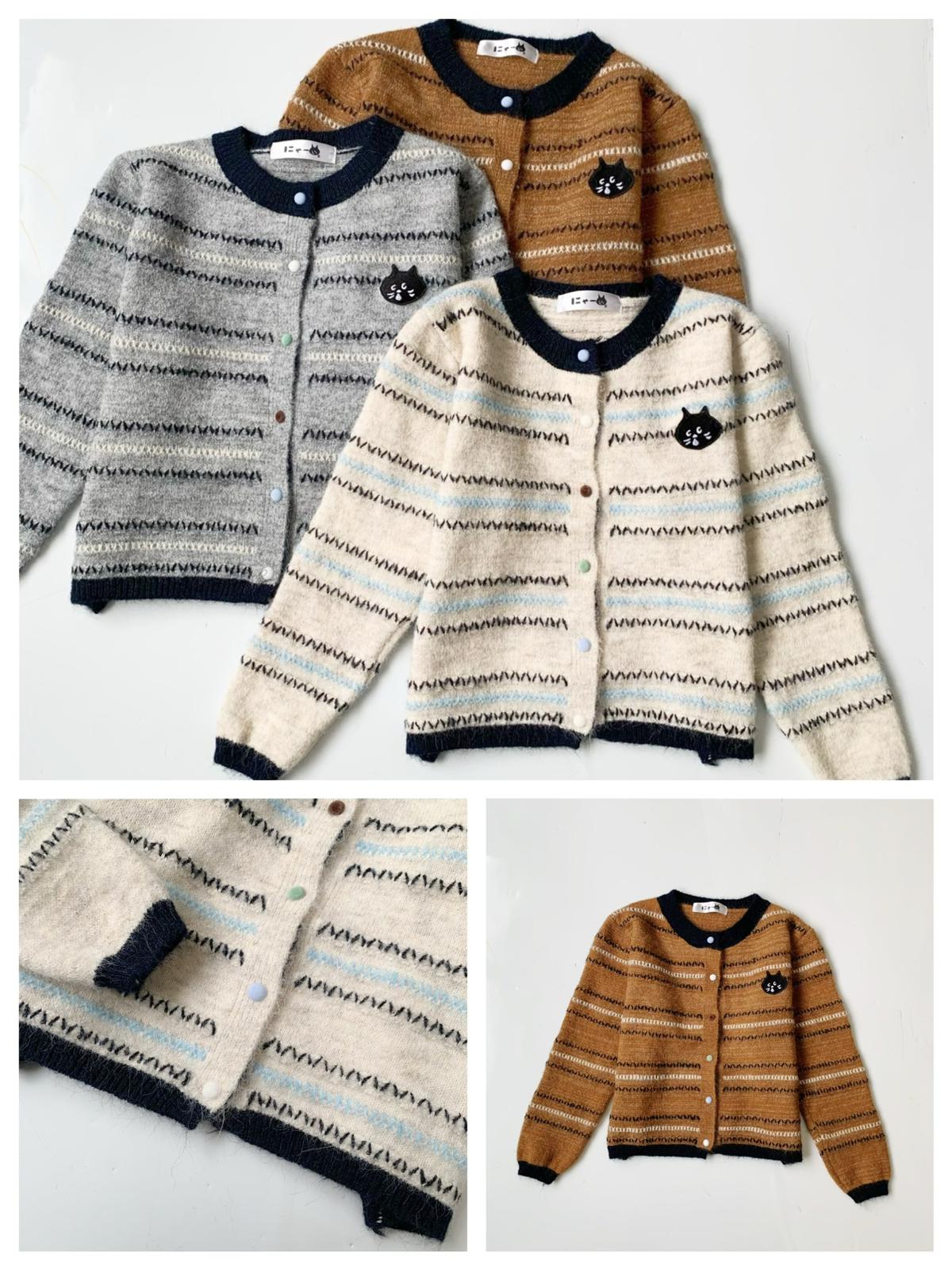 驚訝貓間條毛衣開衫 $209 顏色:米白 深黃 灰色 尺寸:衣長49肩寬39胸圍52袖長54