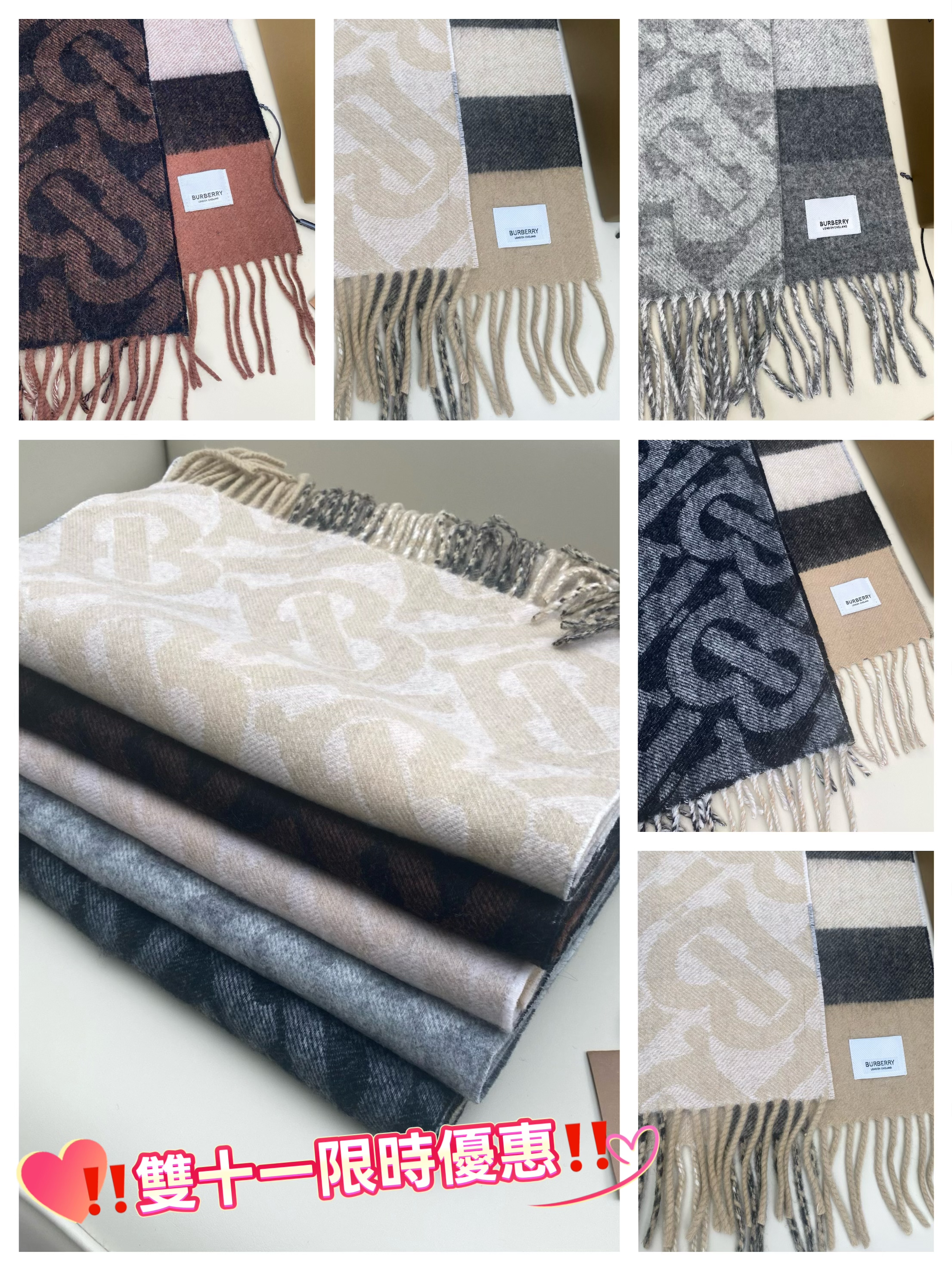 💢💢雙十一限定優惠💢💢 Burberry🌟經典logo vs 格紋設計 $1111/條 每色優惠只做一條🤫 (深啡/深灰/杏色/米粉/淺灰) 上年一出即秒殺🫶🏻 冇搶到嘅朋友🫣機會又黎啦 雙面羊絨 32*180Cm