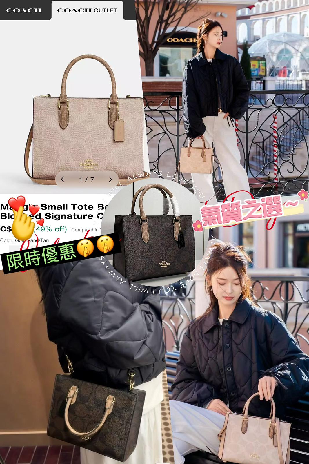 限時40%off‼️‼️ Coach Maggie Small Tote Bag In Blocked Signature Canvas $699 配有長肩帶,可單肩斜孭 適合各種場合🥰🥰 袋型無論身高高定矮都可以輕鬆駕馭😍蛇紋手柄 尺寸約:25x14x20cm 米色/深啡色