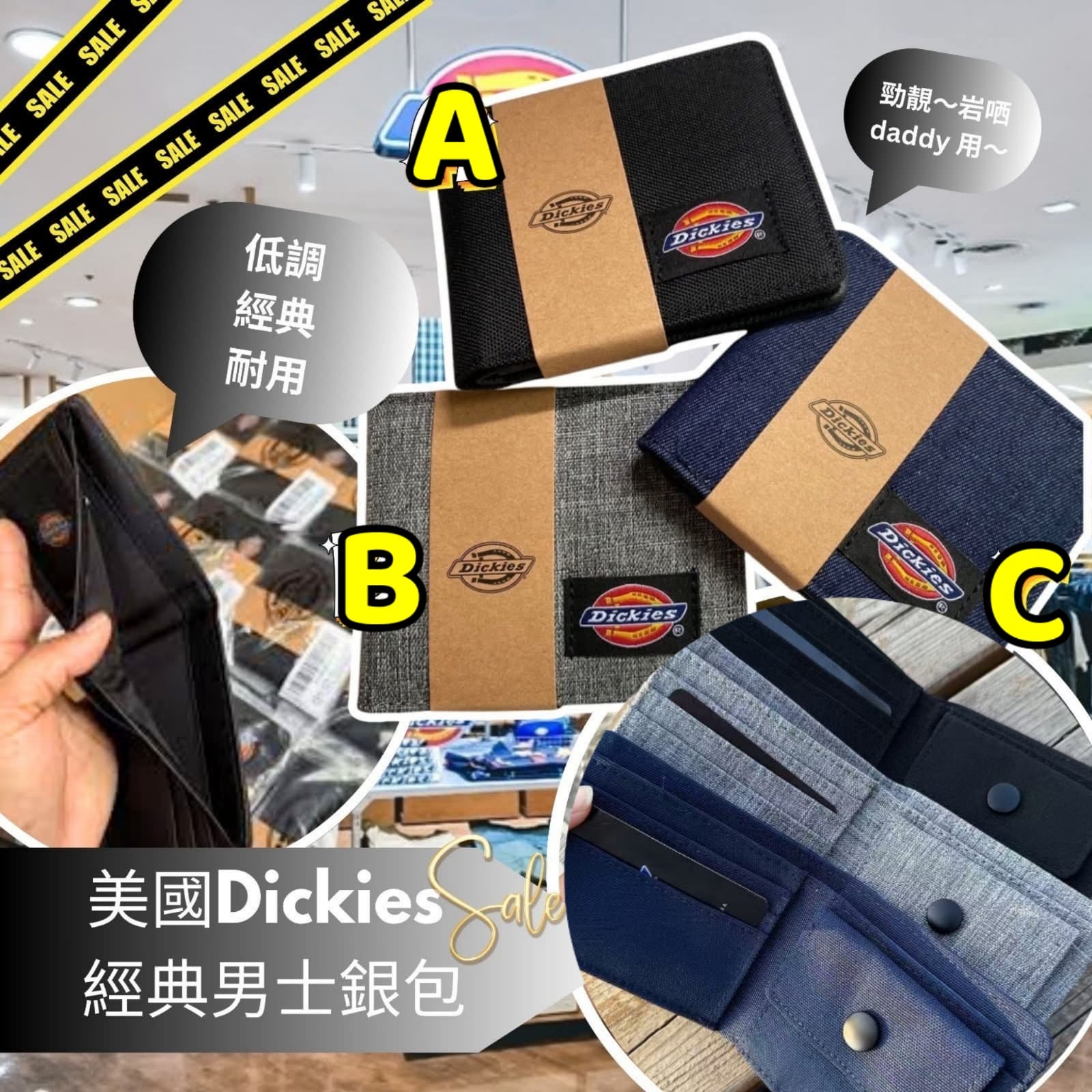 Dickies經典男士銀包 $75/個,2個或以上每個$65 📦到貨日期:11月下旬到貨 款式選擇:*詳見內文* ❌❌原價 $2XX❌❌ 👏👏供家激減低至 $6X👏👏 送禮🎁自用都一流👍🏻 勁靚~啱哂👨🏻daddy、👱🏻♂️男朋友、🧔🏻老公用~多格數💰💵,低調經典耐用 價錢咁抵,💁🏻♀️真系要買嚟送俾您心目中嗰位男神呀~~做禮物真系啱哂啊🎁 只有少量啊,售完即止~ 顏色: A)黑色 B)灰色 C)藍色 尺寸:11.5*9cm