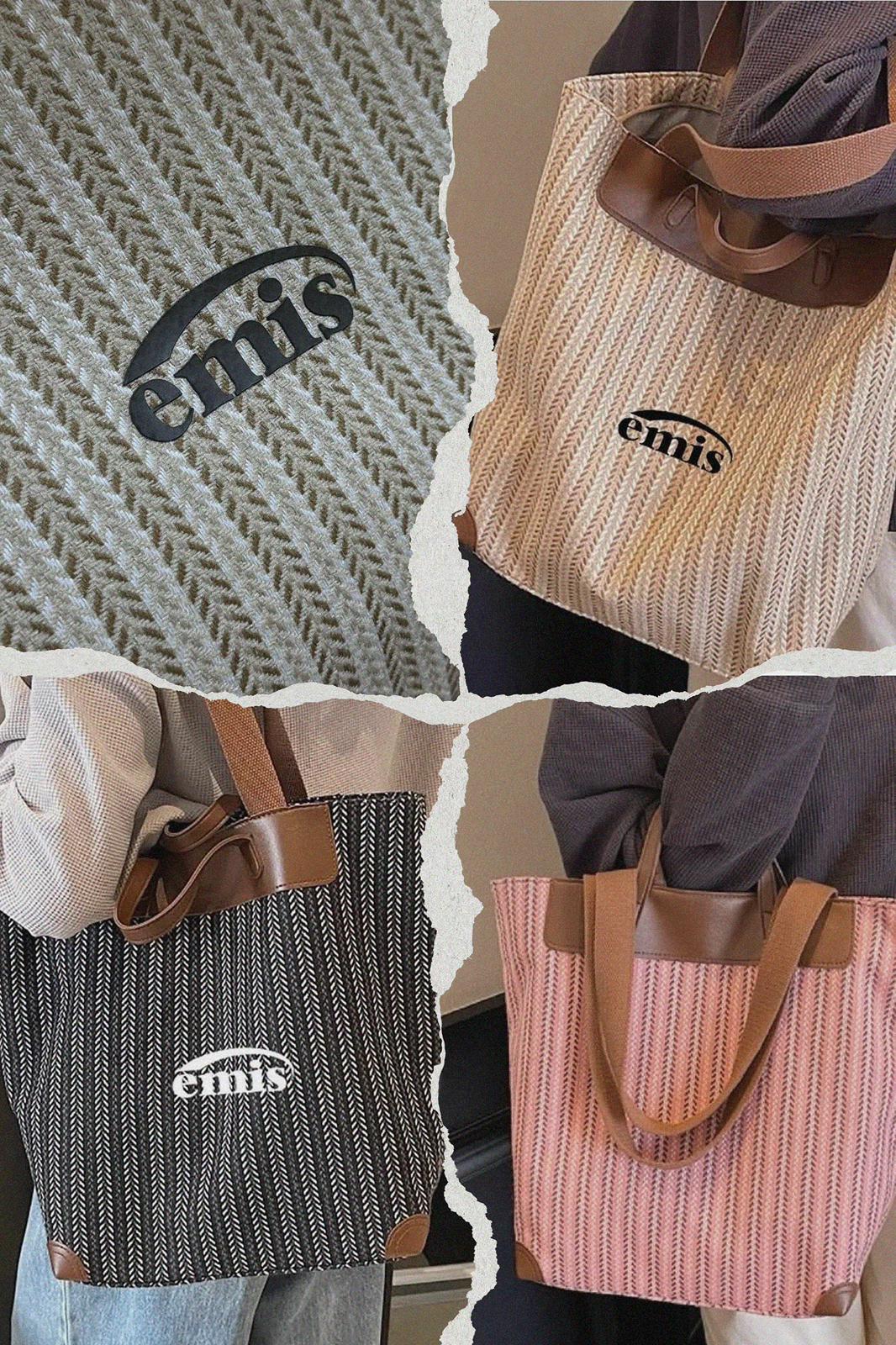 EMIS 間條托特袋 $208/個 秋冬韓風搭配👜 韓妹至愛嘅秋冬Tote黎啦~~~勝在裝得夠多野!花紋間條仲勁有高級感~ 韓國潮牌EMIS係秋冬出嘅嘅間條托特袋終於嚟啦❗️無論係襯Casual Look定襯件大褸,加埋呢個靚袋配搭即刻變100分!呢個絕對係你今季必入💖 📏 尺寸:33*40*16cm * 夠晒深容量大,裝13寸電腦無難度💻 ✔️ 厚實毛呢紋理面料,挺身有型唔會塌 ✔️ 立體矽膠字母 + 雙肩帶設計,手挽/單肩都得,優雅又實用 ✔️ 內裡雙面口袋分區,收納整齊超便捷 🌈 三色選擇🌈 ▪️ 粉色間條:淡粉x咖色交織,溫柔減齡感滿分🌸 ▪️ 米色間條:奶白淺咖復古配,慵懶優雅氣質即刻有☕️ ▪️ 黑色間條:經典黑白百搭,耐臟又型格🖤