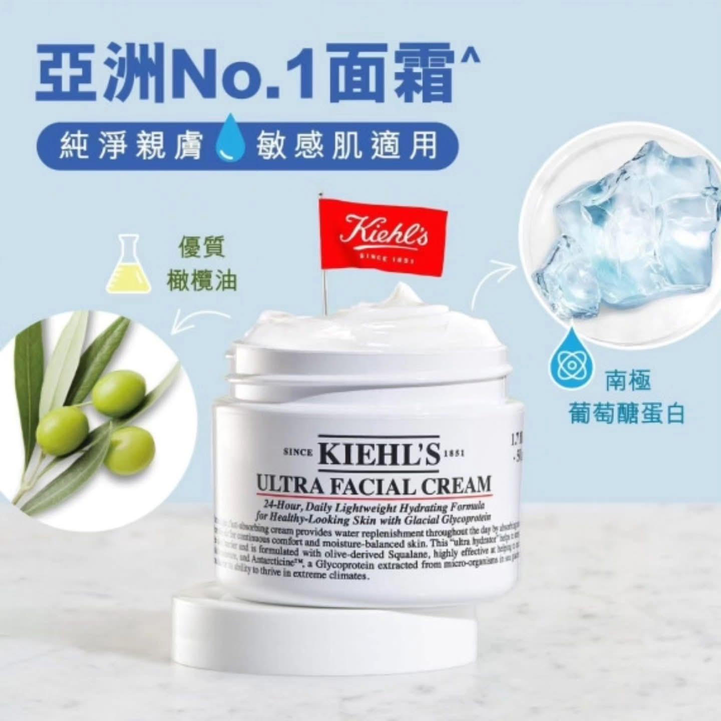 Kiehl’s 高保濕面霜 50ml專櫃 $189/樽 125ml 專櫃 香港專櫃: $365 📦2星期到貨 低調又好用既面霜‼️ 專櫃$340❌50ml 連續12年香港銷量 No. 1 全球每3秒售出1瓶 長達72小時儲水鎖水效能,強韌肌膚抵御外界環境損害。 源源灌注水分至15層角質層, 高滲透超吸收。 2小時重建及修復肌膚屏障,防止水份流失,舒緩泛紅乾癢。 柔滑乳霜質感,完全不黏膩,不致粉刺配方,無添加酒精,無香料,無色素,無礦物油,無羥苯甲酸酯防腐劑 (Paraben)、胺甲醯胺 (Carbamides) 及三乙醇胺(T.E.A) 致敏成分,敏感膚質亦可安心使用。