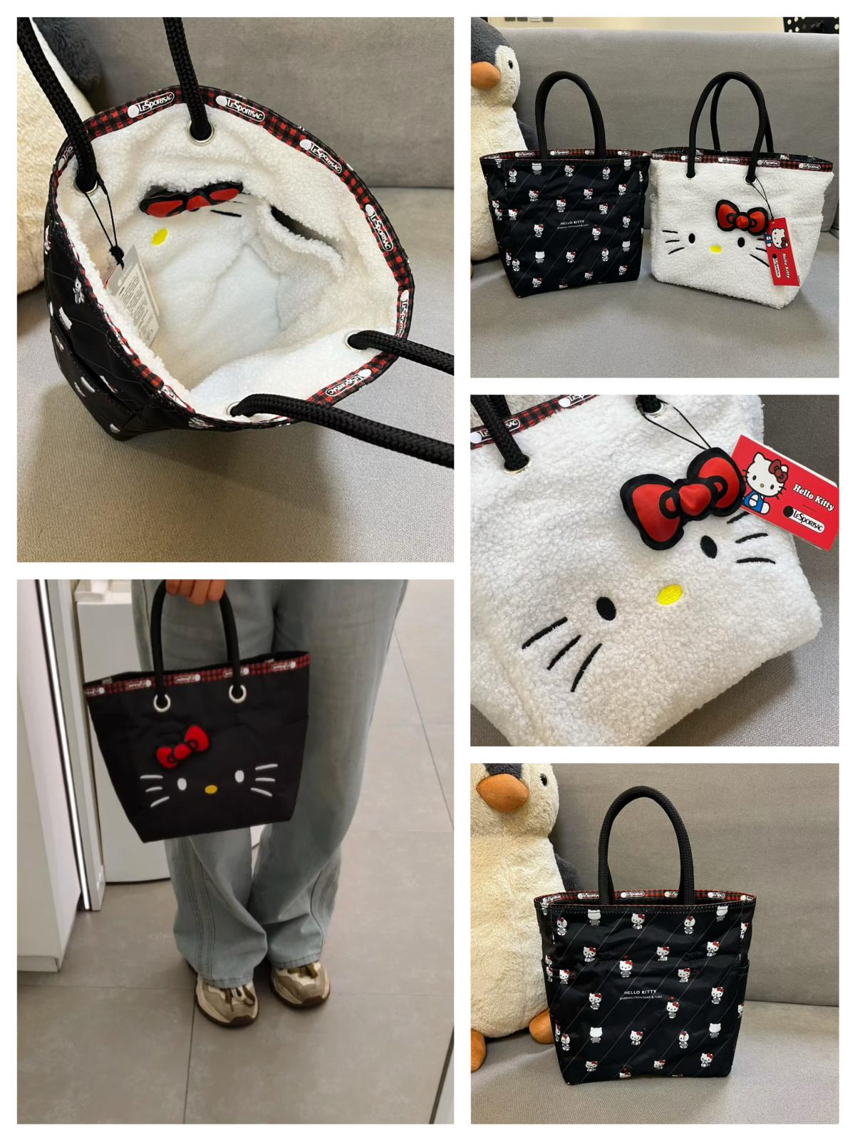 LESportsac x HelloKitty聯名款手提袋 $225 超可愛kitty臉型設計 雙面可用 正面羊羔絨 背面滿印KT印花 容量大💪🏻手機、銀包、日常用品都裝到 放得落iPad ~側面仲有位放水壺