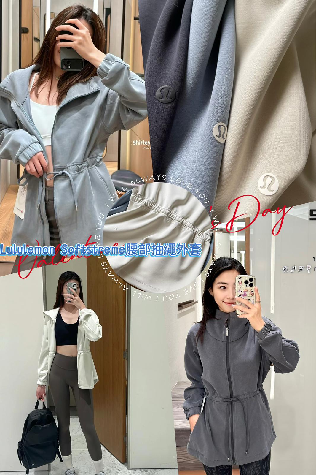 LululemonSoftstreme腰部抽繩外套 $428 4季都可以著既外套 上身輕盈,完全唔臃腫 襯闊腿褲或瑜伽褲都好睇🥰 經典立體的剪裁 腰部抽繩設計顯腰線 抽繩一拉緊顯瘦又顯高 立領設計 袖口是彈力鬆緊設計 兩側的斜插口袋 深度裝到手機 後背設計立體拼接剪裁 Softstreme面料 超級親膚 機洗後唔會變形、起毛粒 顏色:黑灰色 奶油白 霧霾藍 4 衣長 69 胸圍52腰圍38袖長55 6 衣長71 胸圍55腰圍41袖長56 8 衣長 73 胸圍58腰圍44 袖長57