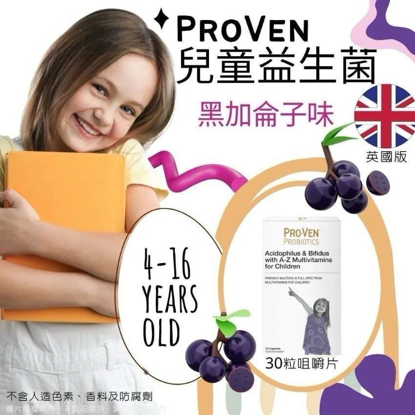 PROVEN 兒童益生菌咀嚼片PROVEN (英國🇬🇧🇬🇧🇬🇧版)(1盒30粒) $95/盒,2盒起每盒$85/盒 開團收單🥰😘PROVEN 兒童益生菌咀嚼片PROVEN (英國🇬🇧🇬🇧🇬🇧版)(1盒30粒) 🙌🙌🙌👧👦👩 英國🇬🇧🇬🇧🇬🇧勁減💥 低至3折‼️ 😱 ✔️ 多種維生素 4-16歲(30粒咀嚼片) ,❌ 不含人造色素、香料及防腐劑❌ !多種維生素 4-16歲 (30粒咀嚼片) 黑加倫子味道🍇 小朋友🫣 揀飲擇食😩 ,有時又不喜歡吃菜🫠 有時又要迫她飲水才飲🫥 ,如何令爽爽的肚子乖乖呢🤔 ? 今日推介ProVen 兒童益生菌咀嚼片比各位爸媽🤗 ,味道係好小朋友都鐘意食既黑加侖子味🍇 ,香港賣緊hk$2xx,精明既爸媽趁有減價快啲掃定貨😎 ✅ 強化骨骼組織生長及發展,提高鈣質的吸收率 ✅ 有助鞏固健康牙齒 ✅ 增強免疫力,抵抗感染疾病 ✅ 提升消化系統機能,調整腸胃,促進排便規律,幫助營養吸收 ✅ 有助心臟健康發展 ✅ 維持神經系統健康及良好視力,提升學習效率 ✅ 支持良好心理及情緒發展 📍 食用方式:每日1粒 ➖ 餐後服用更佳👍🏻 ➖ 可以搗碎後加入食物、飲料或牛奶中服用🙆 ️ 📦 規格:1盒 30粒咀嚼片 ➖ 味道:黑加侖子味🍇 🌍 產地:英國製造🇬🇧 ✅ 適合: 4-16歲食用 食用期: 2026/11