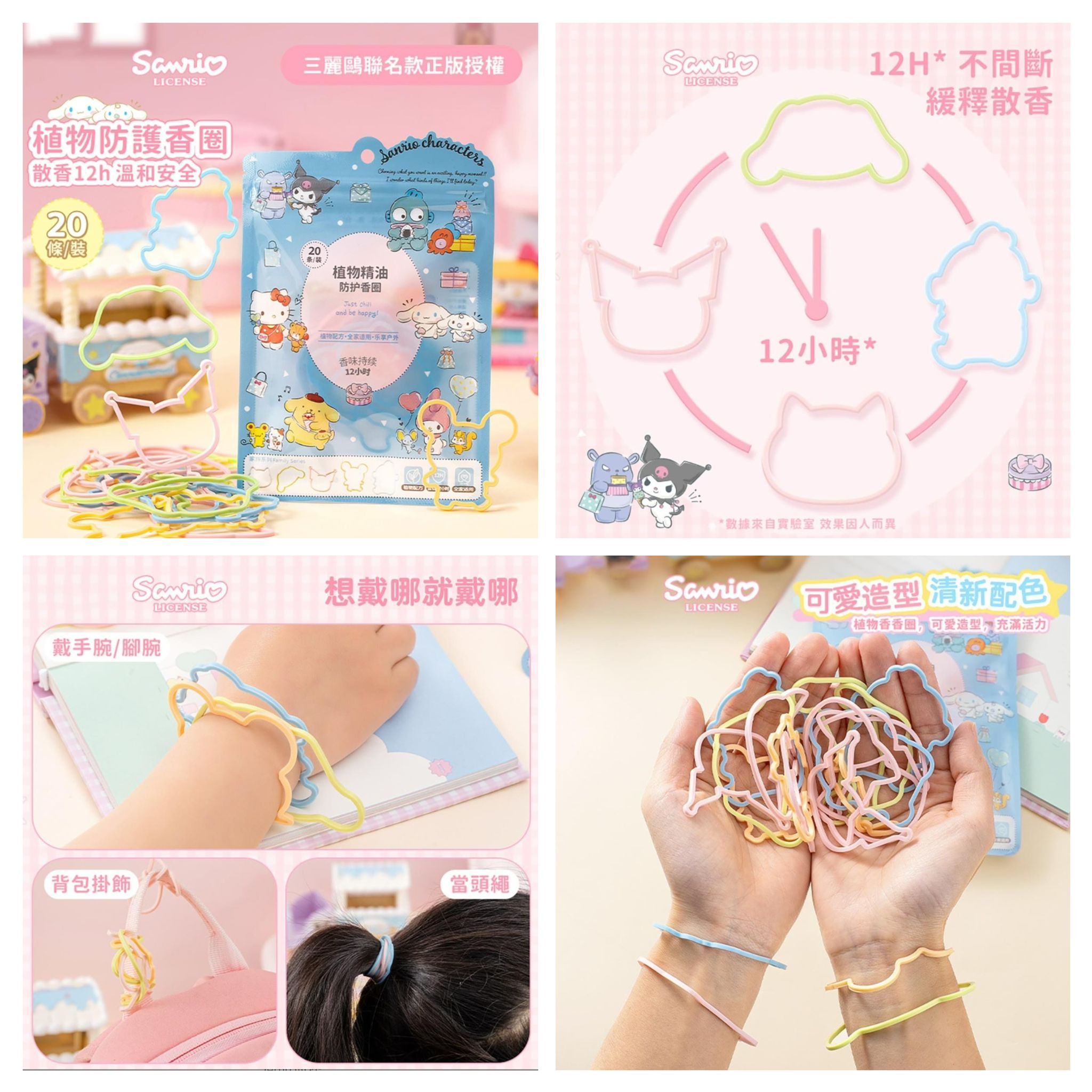 Sanrio卡通植物驅蚊手環 (1袋20個) $28/袋,2袋起每袋$24 #出門🚗寶貝必備 #天然精油驅蚊產品 以天然精油驅蚊🦟採用蚊蟲討厭的香味達致驅蚊效果 避免叮咬所引致的痕癢 🉐產品絕不含殺蟲成分,安全有效👍👍 幼童 或成人均可使用🦠驅蚊功效更長達12小時。 💫 具彈性的矽膠手環,方便套在手腕或腳腕上🐾有效驅趕蚊蟲。 💫具防水功能,手環沾濕後亦不影響驅蚊功效。 💫 共5款不同顏色及設計的手環,形狀可愛,更可作首飾配襯之用。 有效成分 : 天然精油 使用量 : 套在手腕或腳腕上,每次使用2-4條手環 有效時間 : 12小時(因環境而異) 容量 : 20條(5種類)