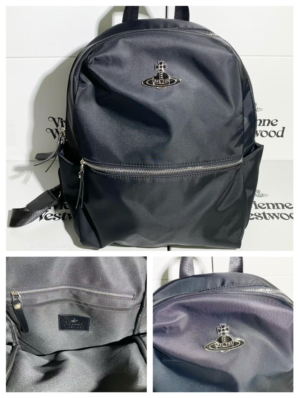 快閃2個⚡️⚡️ $588/個 VivienneWestwood黑色尼龍後背包 簡約圓弧造型+低調銀色logo 容量又超大 返工返學都得~隨便背都很好看 尺寸:28x13x40cm