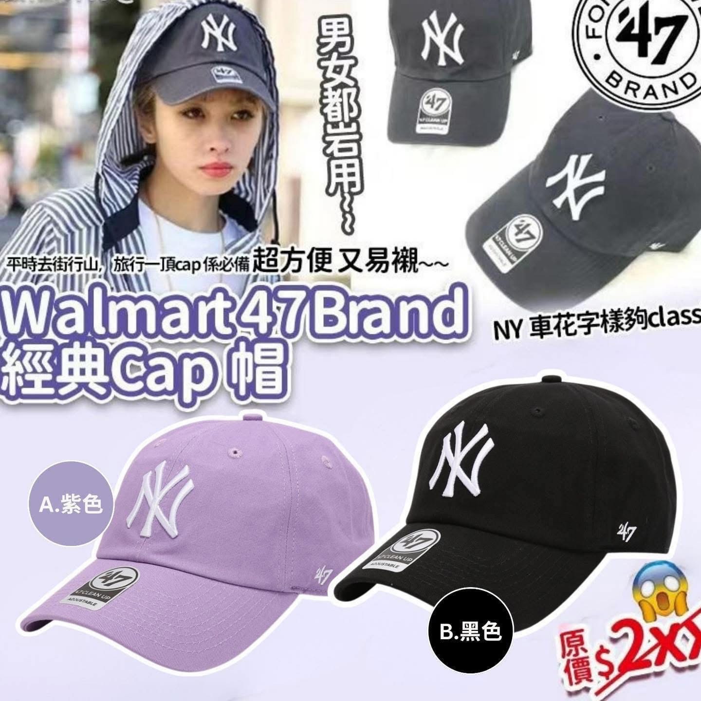 Walmart 47Brand 經典Cap 帽 !! $98/頂,2頂起 $88/頂 勁少見會classic 色減價,數量吾多‼️ 平時去街行山旅行一頂cap 是必備 超方便又易襯~~ unisex size 尺寸,男女都岩~NY 車花字樣夠classic~~~快手。 ●メーカー:47 ●カラー:ロイヤル、カーキ、ブラック ●サイズ:大人フリー (55cm 〜 61cm) ●素材:綿 100% A.紫色 B.黑色