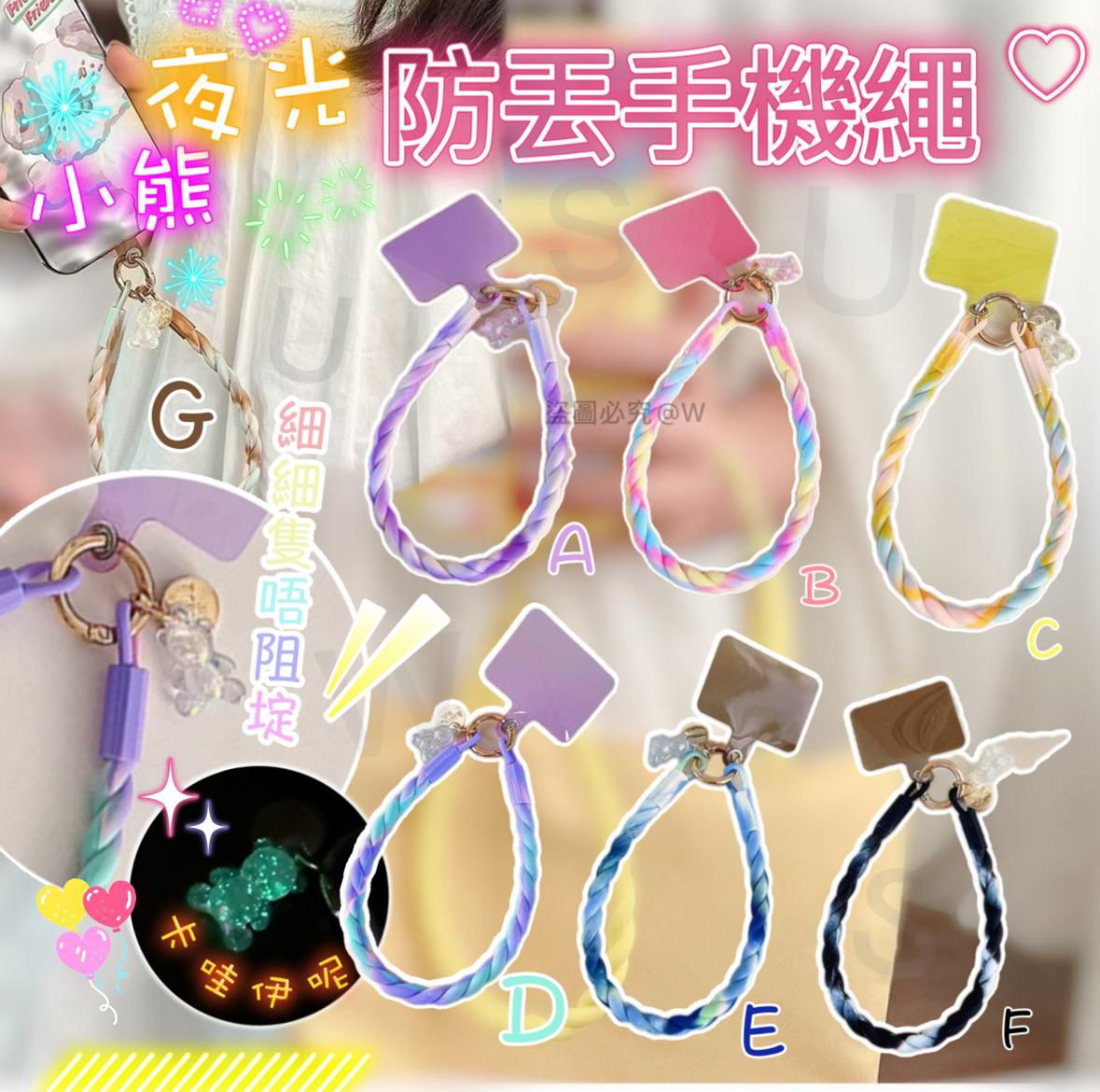 🔥多巴胺配色🔥夜光小熊防丢手机掛繩