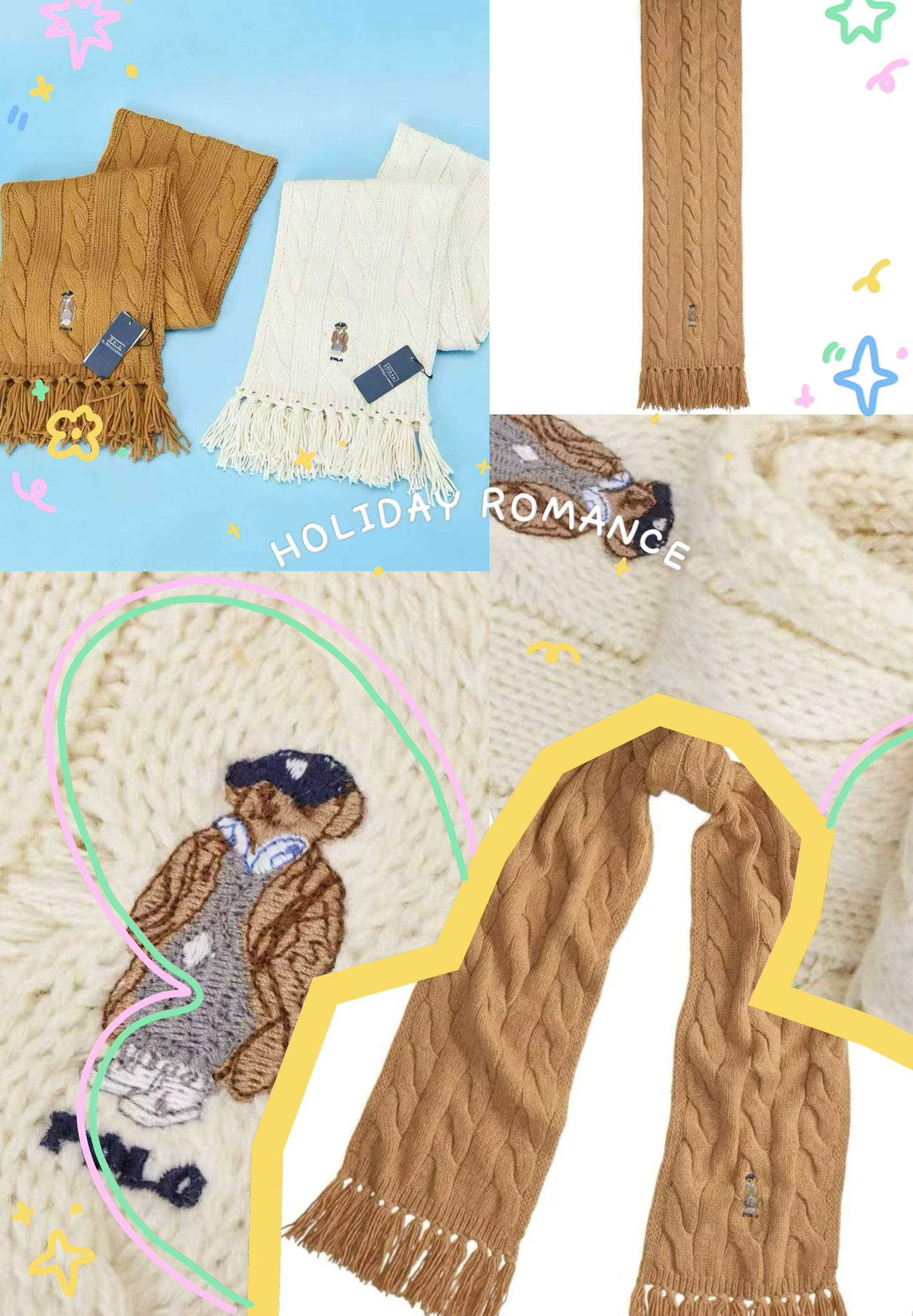 Ralph Lauren保暖針織絞花刺繡熊頸巾 $438